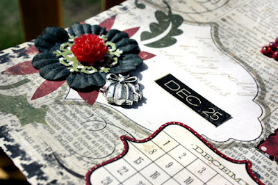 Again with the MME paper pad, and some LYB and Scenic Route pp's layered for the background. I used the Santa's Sleigh and Holly chippies which I altered with some fine glitter in green and red. The red rhinestone trim is available from my2angels.
